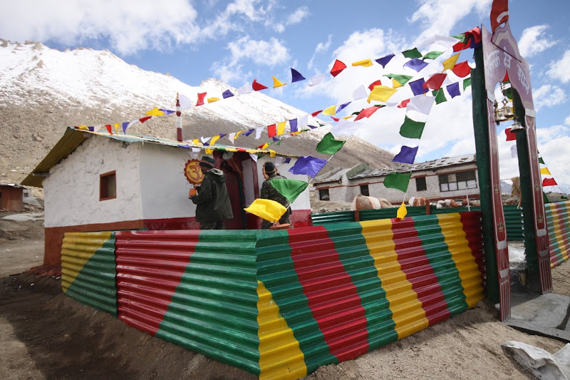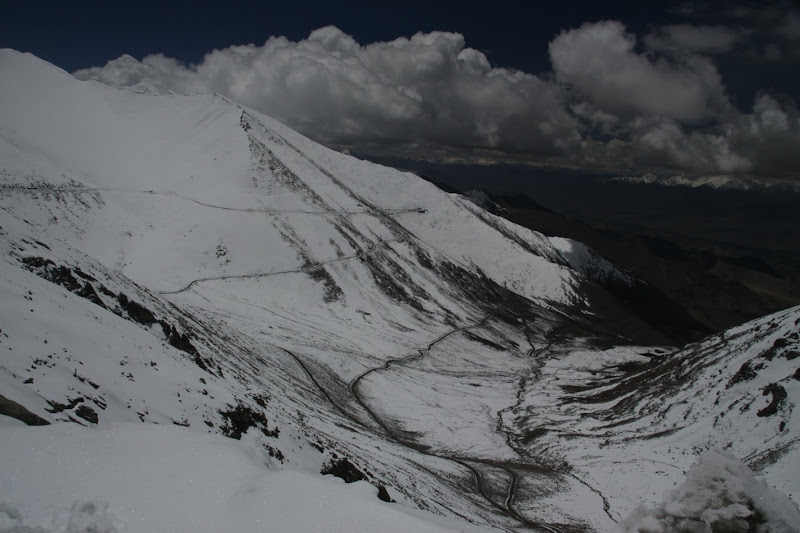 Swoją drogą najwyższe lotnisko powinno być ułatwieniem, więcej problemów powinno sprawiać najniższe lotnisko, ale może się czepiam. Tak czy inaczej, 3500 m n.p.m. to dużo i mało. Dużo, bo już można poczuć chorobę wysokościową, mało bo żeby gdziekolwiek w okolicy się poruszać trzeba przekroczyć 5 tys. Dlatego drugiego dnia po przybyciu towarzystwa, wybraliśmy się w stronę doliny Nubry, przez przełęcz Khardung La. Tutaj wszyscy zgodnym chórem powtarzają że przełęcz jest na wysokości 5602 m n.p.m. i jest najwyższą przejezdną przełęczą na świecie. Faktycznie przełęcz ma 5359 m n.p.m. i jest niższa od tybetańskiej Suge La o dobre 200 m, ale tu nikt się do tego nie przyznaje. Rekord jest rekord i ma być na terenie Indii 🙂 Druga sprawa to przejezdność.