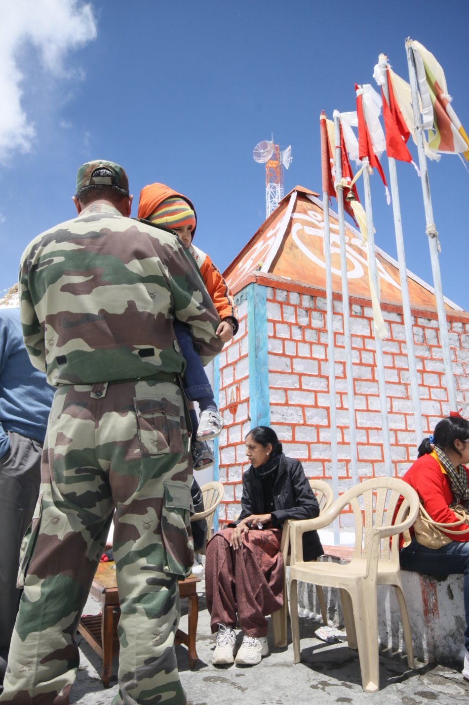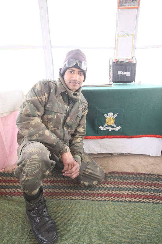 Tu należałoby napisać małą dygresję na temat Indian Army. W stanie Jammu and Kashmir jest ich po prostu pełno. Zwłaszcza w Srinagarze, gdzie mają zasieki na każdym rogu ulicy, a nawet dwa plywające posterunki na jeziorze Dal. Tak czy inaczej, jak im się lepiej przyjrzeć, sprawiają wrażenie trochę roztargnionych. Jeden flirtuje z dziewczyną przez komórkę, drugi znudzony podparty o swój karabin w ten sposób, że ma lufę wycelowaną we własną brodę, trzeci dłubie w nosie beztrosko machając jakimś granatnikiem tuż przy szkole… a jak już zatrzymają takiego zachodniego turystę, to nie wiadomo, czy jest się na posterunku, czy na rodzinnych imieninach. Herbatka, woda, ciasteczka, skąd jesteś? Jak ci się podoba? Czy zima w Polsce jest bardzo zimna? Najlepszy sposób, to się nie zatrzymywać. Jak się po prostu przejedzie, to ewentualnie machną ręką czy krzykną, ale w duszy pewnie sami się cieszą że nie muszą się ruszać i rejestrować przejazd kolejnego turysty. Ciężko mi jakoś teraz wyobrazić sobie, że oni potrafią walczyć na wojnie. Okazuje się jednak że potrafią. Szczycą się najwyżej położonym na świecie czynnym konfliktem zbrojnym (6400 m n.p.m., wojna z Pakistanem). Nie mogę wybrazić sobie walk zbrojnych na takiej wysokości, ale czego się nie robi dla rekordu.