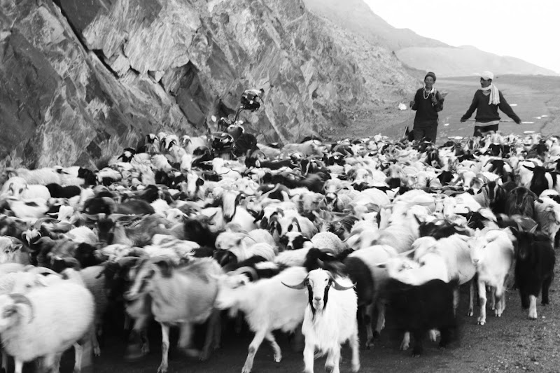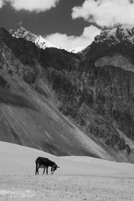 Drugiego dnia przejechaliśmy Khardung La właściwie z rozpędu w kilka godzin. Ostatnie kilkaset metrów w górę przemoczyło i przemroziło nas troszeczkę, ale byliśmy po drugiej stronie i otworzył się dla nas zupełnie nowy, niesamowity widok doliny Nubry i otaczających ją gór.
