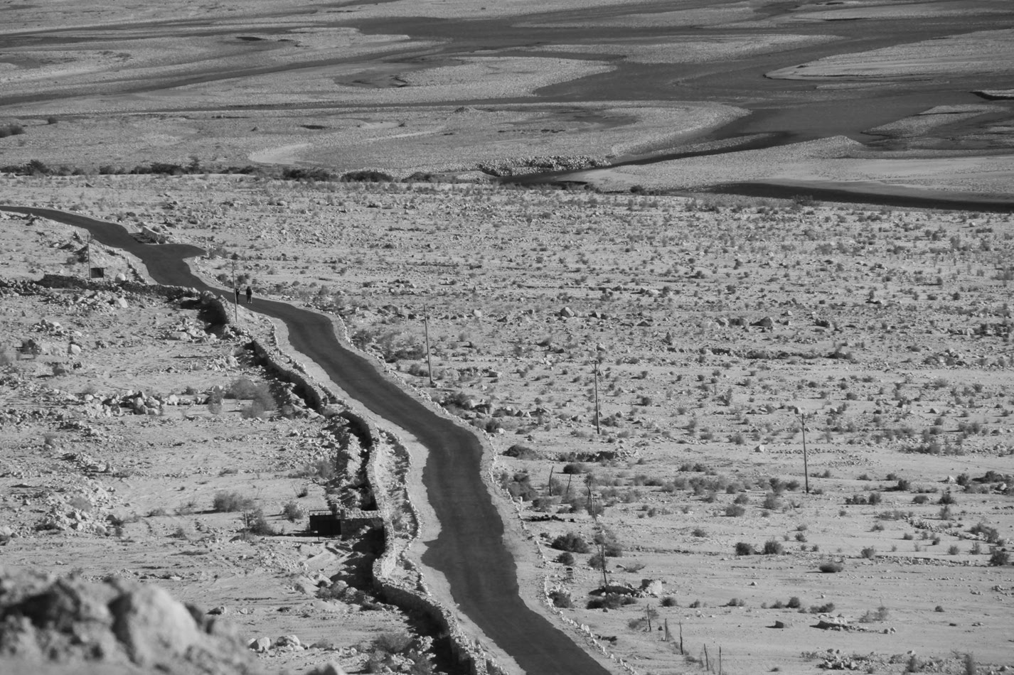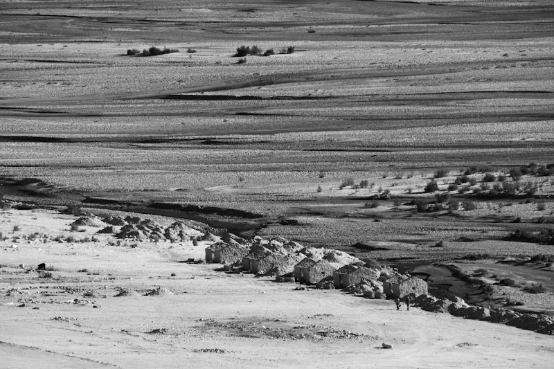Dojechaliśmy do posterunku wojskowego przed wioską. Wojskowi oczywiście poczęstowali herbatą, wypytali skąd jesteśmy, jak nam się podoba i takie tam, jakby zupełnie nie mogli wczuć się w nasze położenie. Powoli zaczęło się ściemniać, mamy niesprawny motocykl i nie mamy gdzie spaą a oni pytają jak się nam podoba! Oczywiście stwierdzili, że nie ma w wiosce żadnego noclegu, jednak postanowiliśmy spróbować. Wymarzona wioska okazała się być złożona z ok. 10 domów, w tym kilku restauracji dla kierowców ciężarówek. Doczłapaliśmy kompletnie wykończeni i zaczęliśmy pytać o nocleg. Okazało się że owszem, jest tu coś w stylu guest housu, ale nie ma właściciela. Ostatecznie miejscowi naradzili się i stwierdzili, że ulokują nas tam bez jego wiedzy. Tak wylądowaliśmy w norze 3×3 m z łóżkami obłożonymi śmierdzącymi szmatami i kiblem 200 m na prawo za ostatnią chałupą. Już mieliśmy zasypiać, gdy pojawił się właściciel i zamienił nam norę na normalny pokój z łazienką i zbawienną możliwością dostania wiadra gorącej wody.