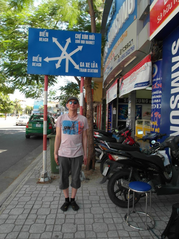 Jednak było po prostu po drodze i nie można powiedzieć żebym żałował spędzonych tu chwil. Na początek miałem nosa odnośnie noclegu. Po obejrzeniu kilku miejsc, zobaczyłem wysoki hotel, ale na pierwszy rzut oka nie wyglądał na drogi. Na miejscu po targowaniu dostaliśmy ładny pokój na trzecim piętrze z widokiem na morze, balkonem, klimatyzacją, lodówką i trzema łóżkami za 10USD. Bywało taniej, ale tu był darmowy internet i właściciel mówiący dobrze po angielsku, co okazało się dość pomocne. Nota bene hotel znajduje się pomiędzy Sheratonem a Novotelem, 200m od plaży 🙂 Nie spodziewałem się że będę sypiał w podobnej okolicy. No ale za 210 000 dongów za dobę to już można wymagać… prawda że cena w dongach robi wrażenie? Dialogi są zabawne przez te dongi, np: “Lobo, zrzućmy się po pół miliona na wspólne wydatki na najbliższe dni”.