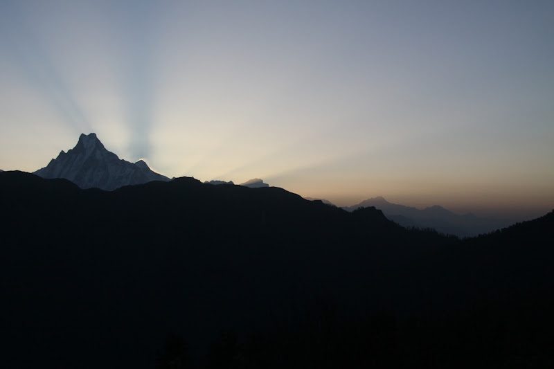 Od samego początku towarzyszył nam widok oddalonych o jakieś 30 km ośnieżonych szczytów Annapurny South (7219 m n.p.m.) i Machhapuchhre (6997 m n.p.m.) – świętej góry Nepalczyków. Wiąże się z tym oczywiście religijna historia o mieszkającej tam głowie boga Wishnu, o ile dobrze zapamiętałem.